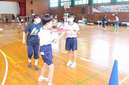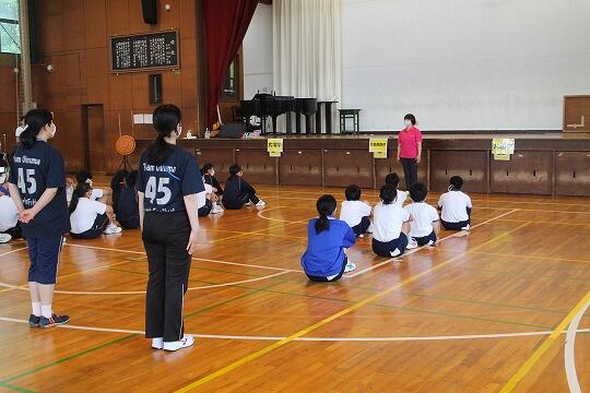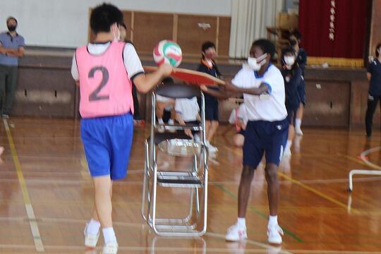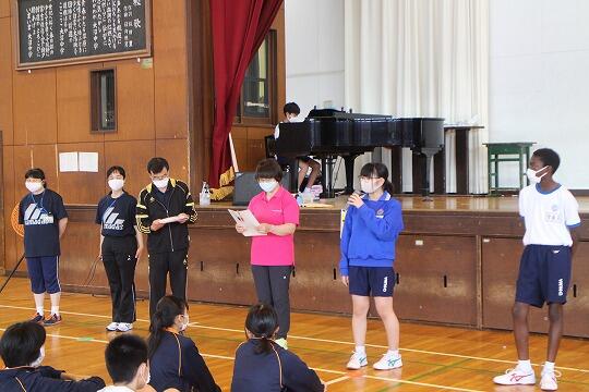 開会式の司会を務めたり、ピアノ伴奏と歌の学校紹介をしたり、ドッチビー(フリスビーを使ったドッチボール形式のゲーム)をしたり、障害物リレーをしたり、4校の生徒たちが交流を深めました。