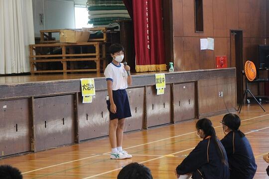 学校教育目標の「心身ともに健康で社会に有為な人づくり」とありますが、「有為」とは「役に立つこと」であります。本日のこの取り組みはまさに地域社会や学校内の社会に役に立つ行為だと言えるでしょう。