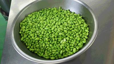調理員さんが、朝早くから下処理をしてくれた枝豆です。きれいな緑色ですね。
