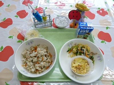 旬のグリーンアスパラガスの入ったミックスポテト、3年生はよく食べてありました。