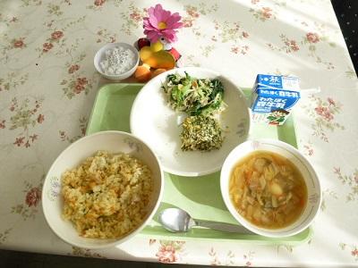 白菜スープには、うずら卵が入っていましたが、上手に配食出来たでしょうか?