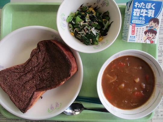 カレーライス(麦ごはん、ルウ)、牛乳、福神漬け、ビーンズサラダでした。