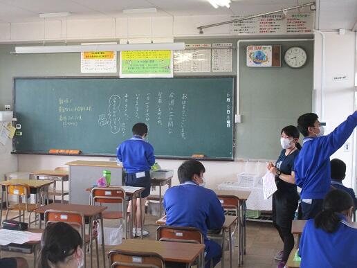 6月8日月曜日です。朝の会から1時間目の様子を紹介します。