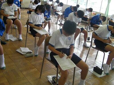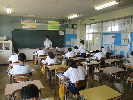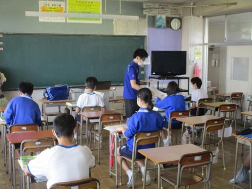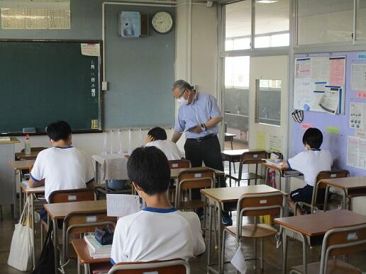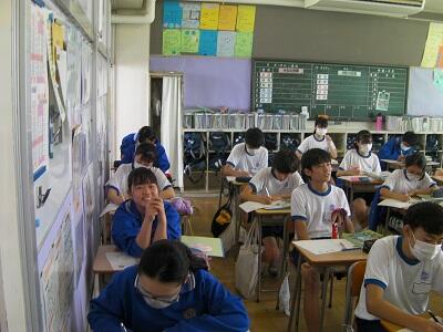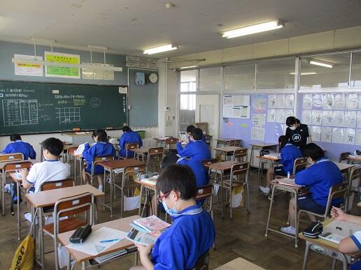 8月31日月曜日です。今日は期末テスト1日目です。学校の様子を紹介します。