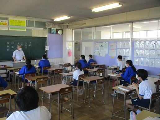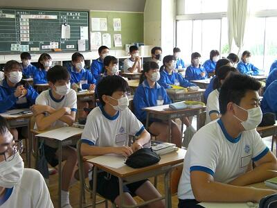 7月31日金曜日、1学期終業式です。体育館に全員が集まることはできないため、代表生徒や先生方が放送室から話し、生徒は各教室で聞く形で終業式を行いました。