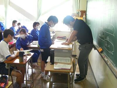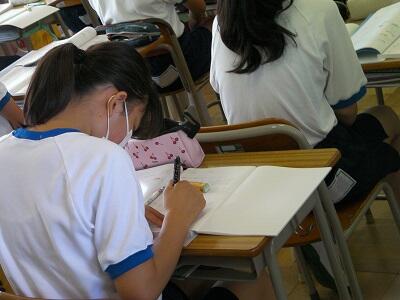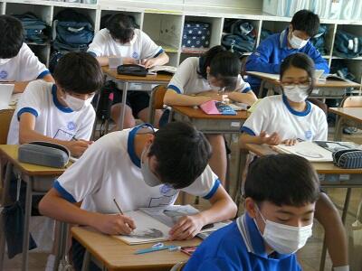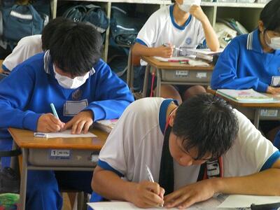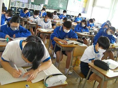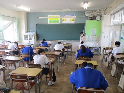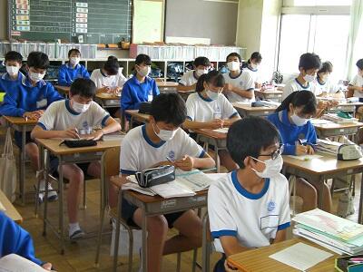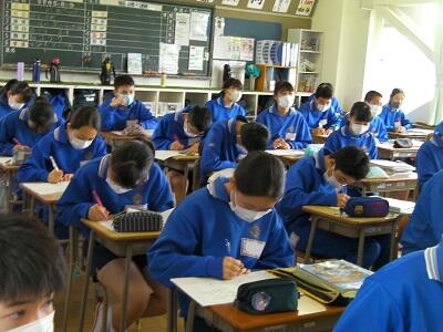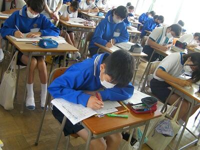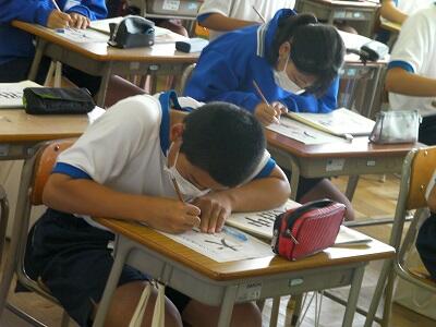 9月1日火曜日です。今日は期末テスト2日目です。学校の様子を紹介します。
