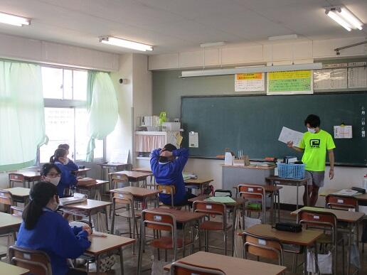 8月25日火曜日です。今朝は地震発生を想定した避難訓練を行いました。