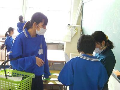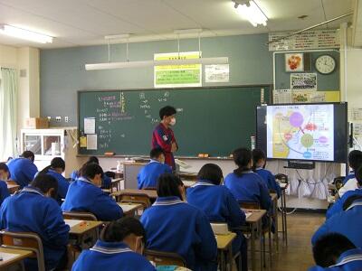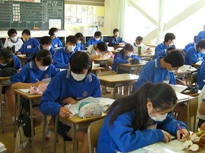1年生家庭科です。食事の役割について学習しています。