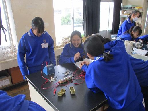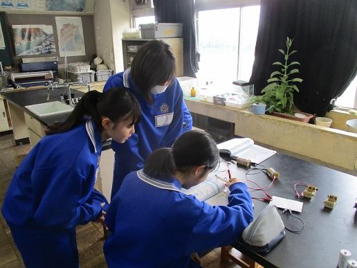 2年生理科です。「電力=電圧×電流」電気について学習しています。