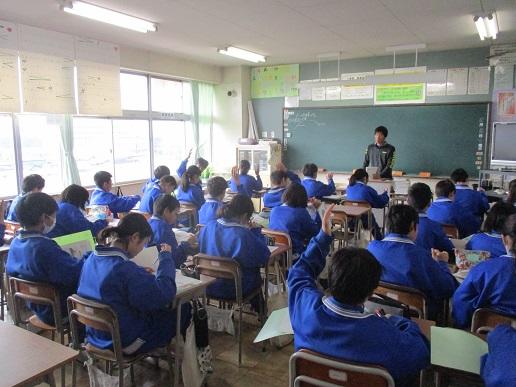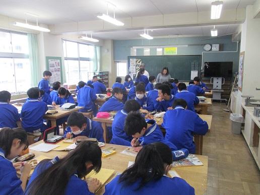 1月27日月曜日です。今日は曇り空、気温の低い日になりました。3、4時間目の様子を紹介します。