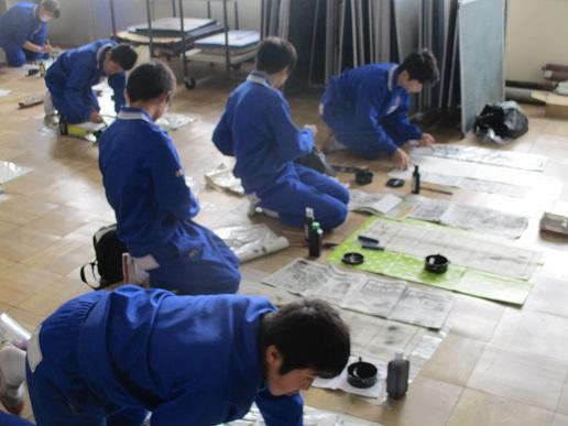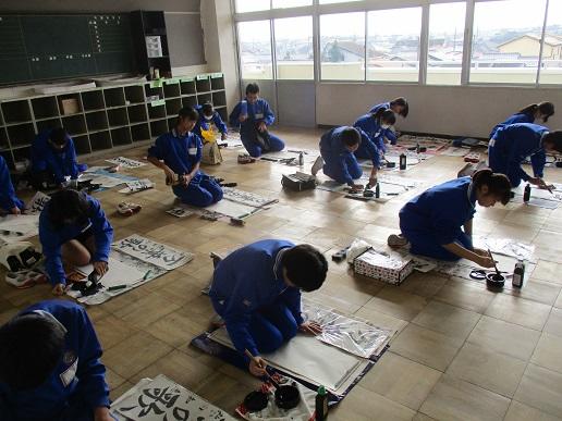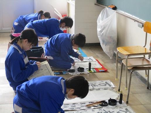 3年生国語、書き初めです。3年生の題は「平和の祭典」です。