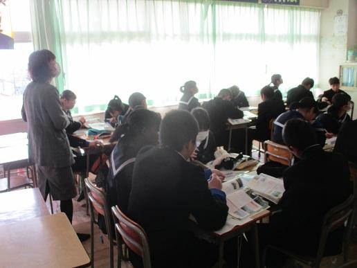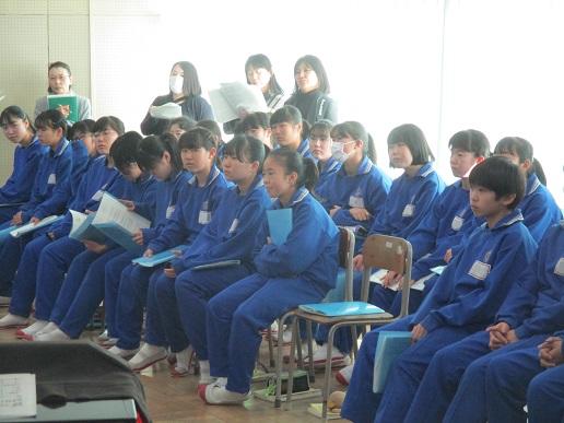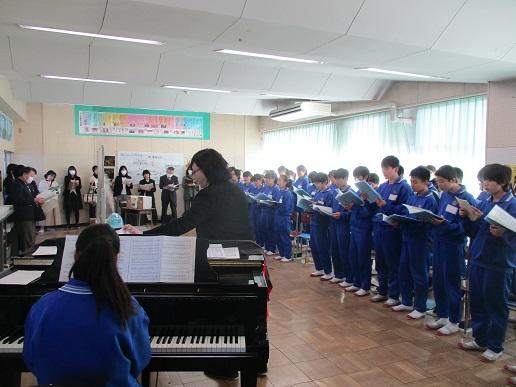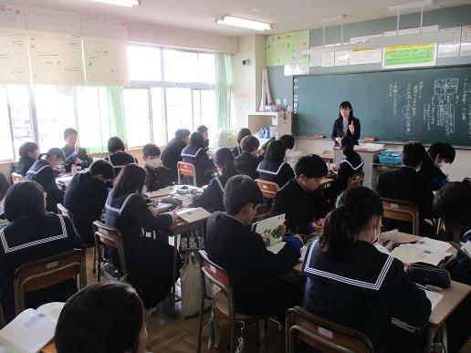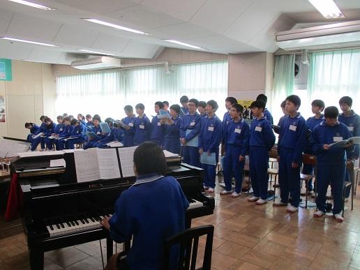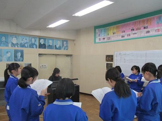 1月31日金曜日5時間目、2年1組で音楽の研究授業を行い、指導者の先生、春日部市内小・中学校の先生方にご参観いただきました。生徒は校歌をはじめ、いつも通りの歌声を見せてくれました。