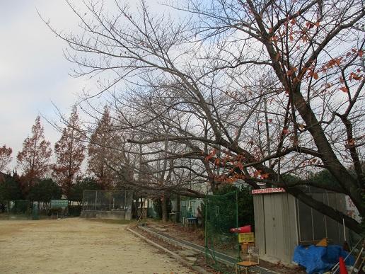 ソフトボール部バックネット横の桜の木です。今年の4月に同じ場所で撮影したときは満開でした。
