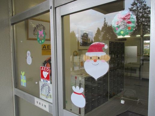 職員玄関です。栄養士さんがクリスマス風にしてくれました。