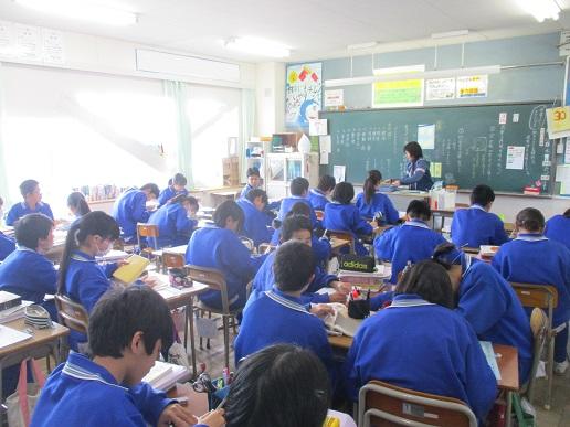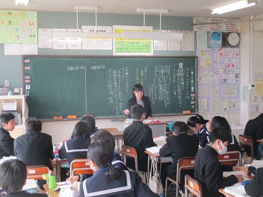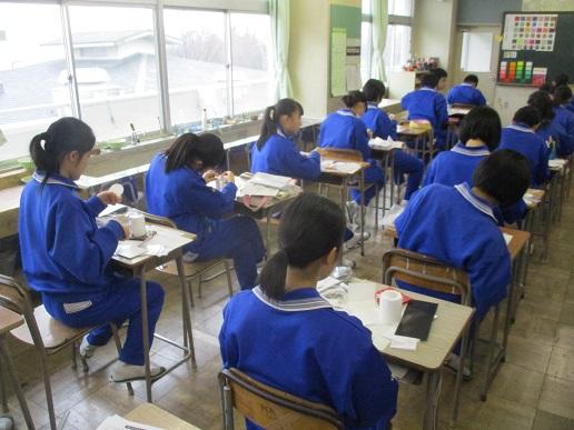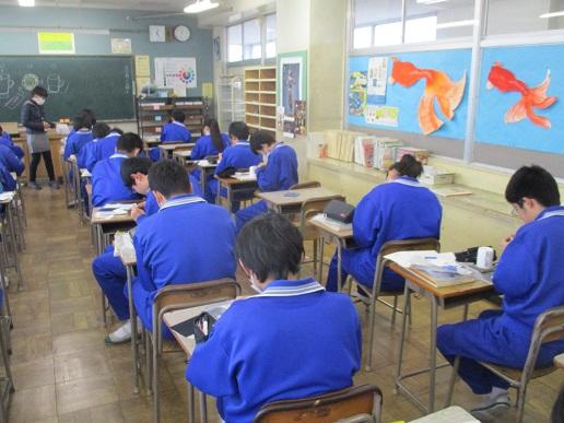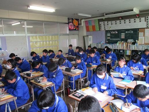 1月17日月曜日です。3年生は埼玉県公立高校受検出願日となっています。授業の様子を紹介します。