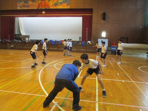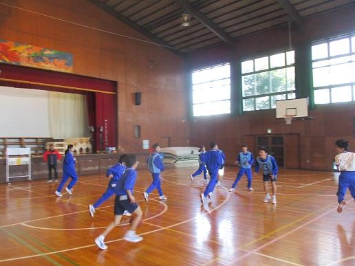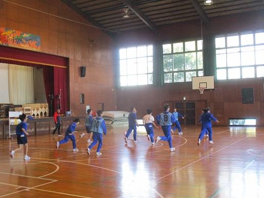今は球技に取り組んでいます。体育館ではバスケットボール、校庭ではハンドボール、サッカーを行っています。