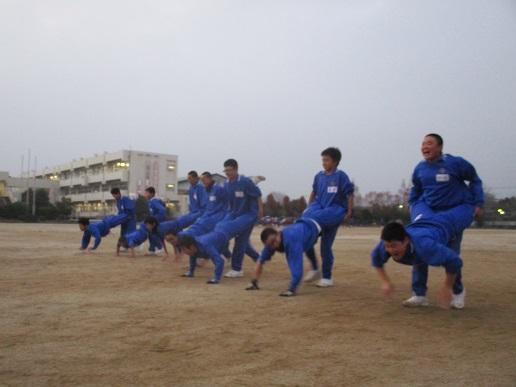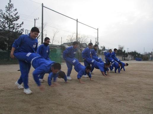 野球部です。元気なあいさつが校庭に響きました。体力づくりに取り組んでいます。チームのまとまりを感じました。