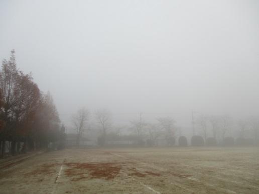12月18日水曜日です。今日は霧に包まれた朝でした。7時半過ぎの学校の様子です。