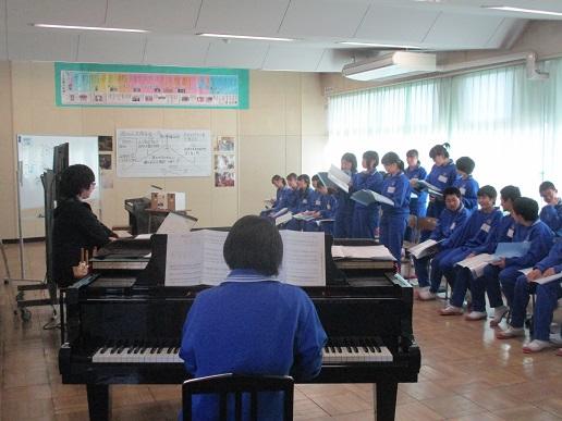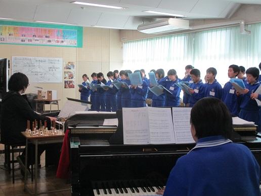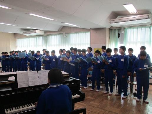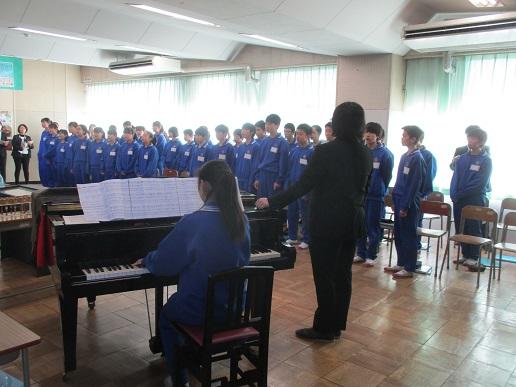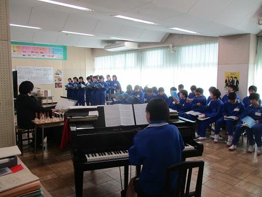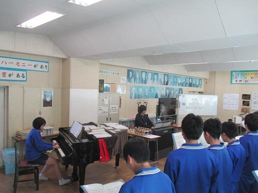 3年生音楽です。「友」という合唱曲の練習をしています。