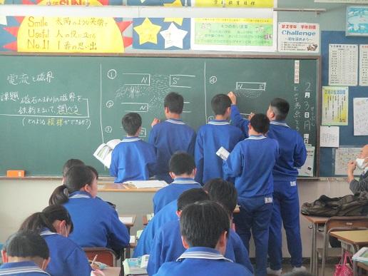 2年生理科です。電流と磁界について学習しています。先日行った実験の報告を行っています。