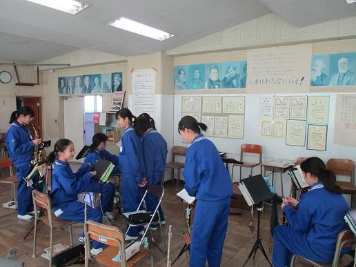 ウインドオーケストラ部です。いくつかの教室に分かれて練習しています。