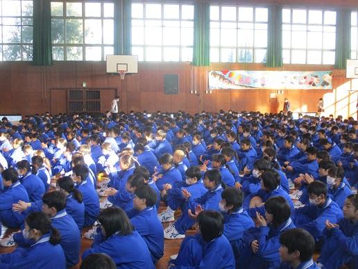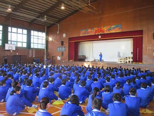 2月21日金曜日、今日はおだやかな晴天です。3時間目、保健体育の様子を紹介します。