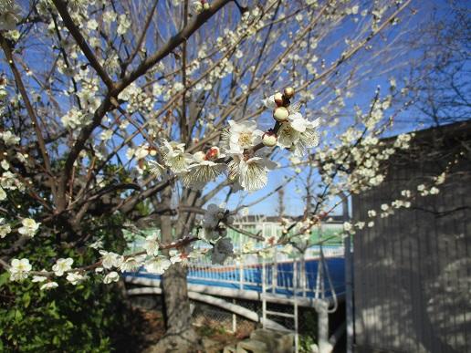 2月18日火曜日です。二十四節季では明日から「雨水」、少しずつ春の気配が濃くなってくる頃です。プールの横にあるウメがきれいに咲いています。登校の様子を紹介します。