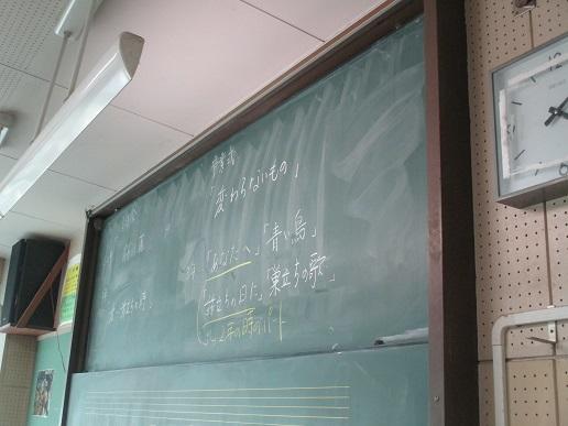 6時間目、2年生音楽です。合唱曲「変わらないもの」を練習しています。校舎内に気持ちよく響く歌声に、引き寄せられる思いがしました。