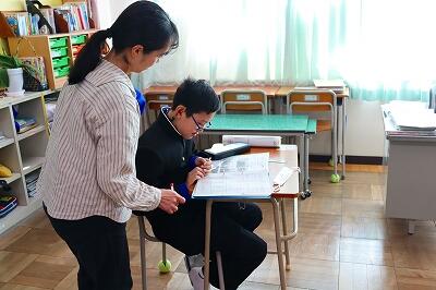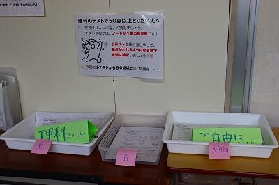 理科室前には自主学習用プリントが置かれています。ありがたいことですね。