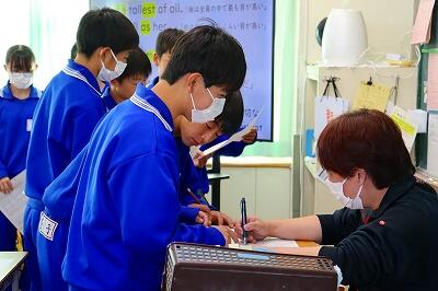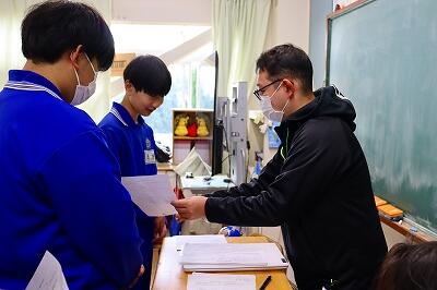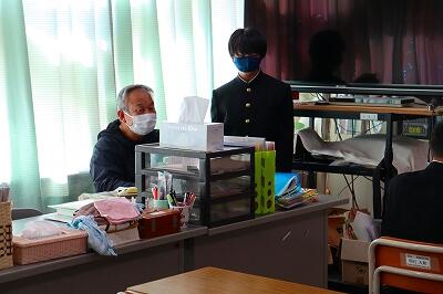 3年生 朝の会は進路関係の書類提出で行列ができていました。