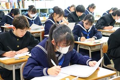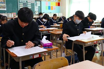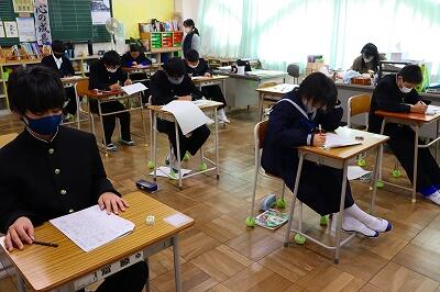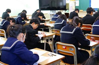 ご存じの方も多いとは思いますが、いま市内の多くの小・中学校等がインフルエンザによる学級閉鎖、学年閉鎖、学校閉鎖となっています。本校は幸いにも全校舎で換気を徹底しているからでしょうか、まだ蔓延するまでには至っていません(3年生のあるクラスは多めです)。インフルエンザは空気中に飛散したウイルスで感染が広がります。つまり、空気をよどますことなく換気することが最も大切な予防法だと考えます。ご家庭でも定期的な換気にご留意ください。また、ウイルスを含んだ空気を吸い込まないようにすること、つまりマスクをすることも非常に大切なことだと考えます。本日以降、当面の間はマスクを必須としますので持参させてください(屋外でマスクをする必要はありませんが、屋内は必須です)。また、最も危険な場は塾です。塾の狭い部屋に複数の学校の生徒が勉強に来ているのですから。塾でも換気とマスクを心がけるようお子様にご指導ください。よろしくお願いします。(校長)