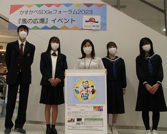 本日、イオンモール春日部店、1階、風の広場にて、春日部市政策課主催の「かすかべSDGsフォーラムが行われて、本校の3年生2名が出演しました。