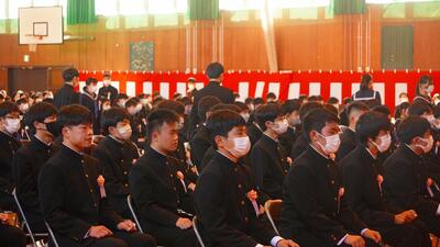 本日、第46回卒業証書授与式が行われました。呼名の返事や歌では、この3年間の気持ちがこもった素晴らしい内容でした。御卒業おめでとうございます。夢や希望の実現に向けて、これからも頑張ってください。