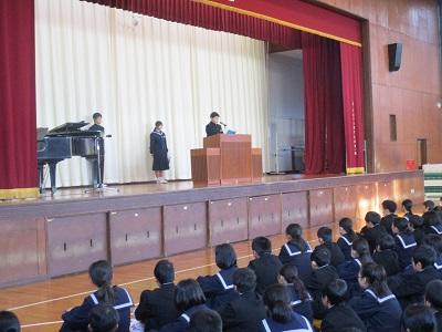 本校からは、3年2組が学校代表として出場しました。合唱祭でも最優秀賞