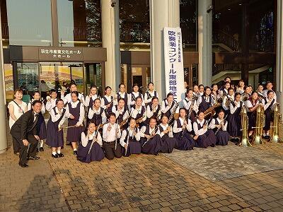 埼玉県吹奏楽コンクール東部地区大会が羽生市産業文化ホールにて行われました。本校は緑中学校と合同の演奏団体(Aの部)で参加しました。結果は見事!銀賞を受賞しました。課題曲はⅡ、自由曲はおなじみで得意の「風の谷のナウシカ3章」でした。連日の猛暑の中、緑中の生徒や先生にもお世話になりながら、よく練習に励んでいましたね。本番の演奏は、会心の演奏だったと思います。演奏後の生徒たちの写真の表情がそれを物語っています。銀賞入賞おめでとうございます。お疲れさまでした。