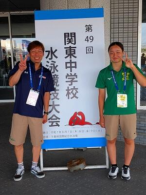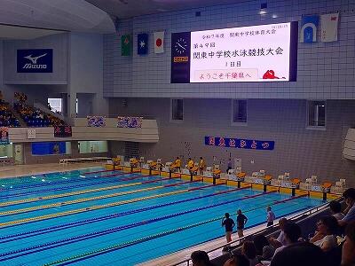 本日は、千葉県の国際総合水泳場にて、学校総合体育大会、水泳の部の関東大会が行われました。本校からは3年生の新井里奈さんが共通女子200m平泳ぎで出場しました。私は教員時代、陸上競技部の顧問を長年勤めましたが、陸上競技と水泳はよく似ていると思います。誰にも邪魔をされることもなく、自分のコースをベストを尽くして走る(泳ぐ)ことが共通していると思います。非常に孤独な競技です。そんな中、今日は涙が出るほど嬉しかったことがありました。埼玉県の選手たちが選手団を作り、まとまってスタンドに座り応援をしていました。「第4組、第3コース、荒井さん、埼玉、春日部大沼中」とアナウンスされると、ワーッという歓声と拍手が湧き起こりました。私は自分が応援されているかのように嬉しさが込み上げてきました。荒井さんは去年に引き続き関東大会という大舞台で力泳しました。惜しくも予選は突破できませんでしたが本当によくがんばりました。お疲れ様でした。