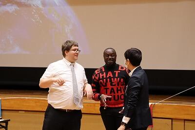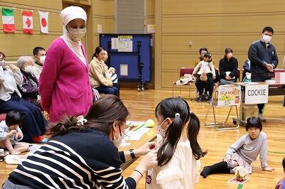 本日午前中に、中央公民館でKasukabe・インターナショナル・フレンドシップ・デーが行われ、春日部市の小・中・義務教育学校の児童生徒が多数参加しました。市内の小・中・義務教育学校のALTさんたちには、それぞれの母国があります。ALTさんたちの母国の文化の紹介や遊びなどを紹介し、一緒に楽しい時間を過ごすというイベントです。参加した児童生徒たちの楽しそうに過ごす表情が印象的でした。