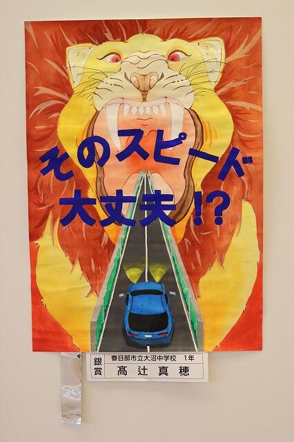 本日午後は、さいたま市浦和区において、令和7年度埼玉県交通安全ポスター・作文コンクールの表彰式が行われ、本校1年生の髙辻真穂さんがポスターの部で銀賞を受賞しました。本校の生徒たちが様々な分野で活躍していることは校長として嬉しく、誇りに思います。髙辻さん、おめでとうございます!みなさん素晴らしいポスターをご覧ください。