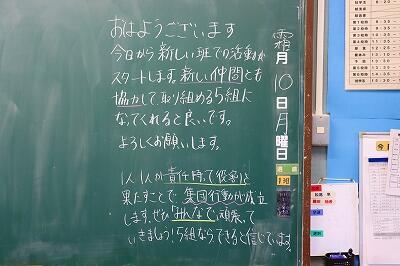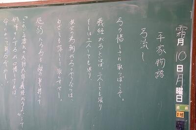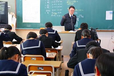 君たちはいま、日々授業という形で様々な学習に取り組んでいますね。好きな教科も嫌いな教科もあるでしょう。また、得意な教科も苦手な教科もあるでしょう。君たちがやがて、上級学校に進むと教科の専門性を選ぶことができるようになります。高校へ行くと、文系と理系のように自分の適性に合わせて力を入れる教科が分かれてきます。さらに大学へ行くと、文学部、法学部、理工学部など専門的に学ぶことを選ぶことができます。しかし、それは義務教育を通じて、幅広く様々な教科を学習した下地があってこそなのです。校長先生は、高校時代は理系のクラスに進み、大学は教育学部の数学科に進みました。でも具体的に何を勉強したかほとんど覚えていません(苦笑)。しかし、先日いつものようにみなさんの授業の様子をふらふらと教室を見て回っていると、2年生の国語の授業で、「平家物語」を学習していました。その時です!「教養ってこういうことだ!」と思ったのです。40年以上前、中学生だった私は、国語の先生に強制的に「祇園精舎の鐘の声、諸行無常の響きあり、…」と暗唱テストをさせられました。他にも「扇の的」や春の七草、秋の七草、旧暦の12ヶ月の言い方(睦月、如月、弥生…)などをとにかく暗記させられたのです。それらが40年以上経った今でもすらすら言えます。つまり、それこそが一生忘れることなく身についた知識であり、これらが私の人生のあらゆるところで、表に顔は出さないけれども人生の選択にさえ活かされている教養なのだと思います。君たちの授業を見て回っていると、あらゆる教科で「懐かしいなぁ」って思う学習内容に出会います。だから、今君たちが授業で学んだり経験したりすることのすべてが「君」という人格を作り上げる材料となっているのです。今日は教養とは何かについての話をしました。すべての授業をがんばろう!という気持ちになってくれたら嬉しいです。(校長)