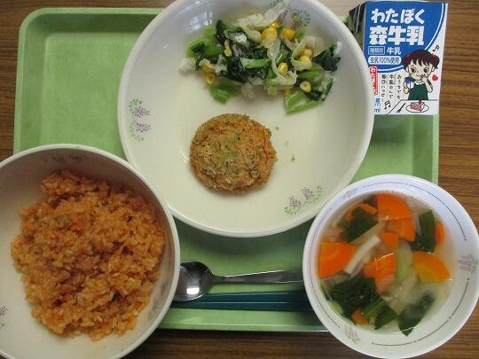 メキシコ風ピラフ(ごはん、ソース)、牛乳、鉄骨サラダでした。