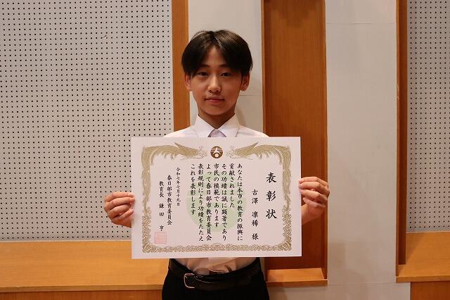 本校2年生、古澤凛稀さんが「2024年春季全日本空手道選手権大会」において、中学1年男子軽量級の部で準優勝したことに対して、教育委員会が栄誉を称え表彰しました。おめでとうございます!これからもがんばってください!