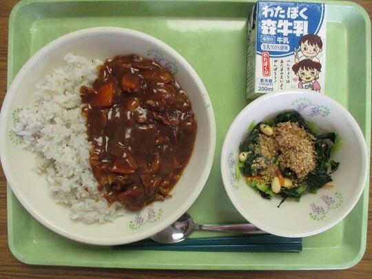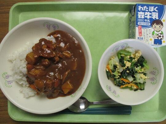 カレーライス(麦ごはん、ルウ)、牛乳、ツナサラダでした。