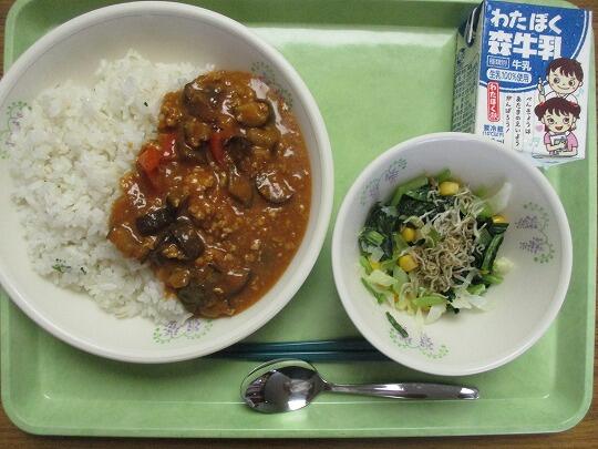 パセリライス、なすのキーマカレー、牛乳、青菜とじゃこのサラダでした。