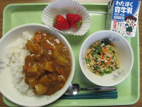 今日の給食(3月7日木曜日) 投稿日時 : 2024/03/07 大沼中学校管理者 カテゴリ: 今日の給食のメニューは カレーライス(麦ごはん、ルウ)、牛乳、バンバンジーサラダ、くだもの(いちご)でした。 今日も美味しい給食をありがとうございました。