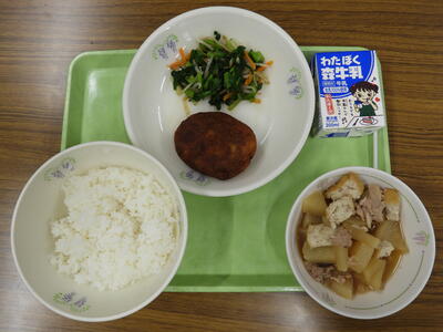 今日の給食(11月21日木曜日) 投稿日時 : 2024/11/21 大沼中学校管理者 カテゴリ: 今日の給食のメニューは ごはん、牛乳、ゼリーフライ、おひたし、大根と豚肉の煮物でした。 今日もおいしい給食をありがとうございました。