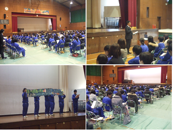 本日、平成29年1月22日(日)~24日(火)に2泊3日で、長野県北志賀よませ温泉スキー場:ホテルセランで行われるスキー教室の保護者説明会が行われました。現在、スキー教室に向けて実行委員会を中心に着実に準備が進められています。本日は実行委委員から、スローガン「真っ白な世界に自分達の色を!たくさんの仲間と心をひとつに!」が発表され、スキー教室の概要、きまり、持ち物等について、学年集会形式での説明会となりました。寒い中、多くの保護者の皆様にお集まりいただき、ありがとうございました。