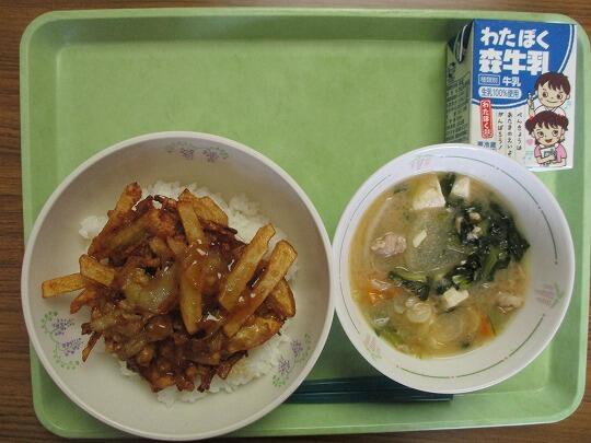 今日の給食(5月1日月曜日) 投稿日時 : 2023/05/01 大沼中学校管理者 カテゴリ: 今日の給食のメニューは かき揚げ丼(ごはん、かき揚げ、たれ)、牛乳、豚汁でした。 今日も美味しい給食をありがとうございました。