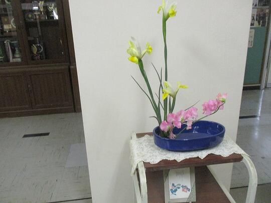 本日から、華道部の生徒の活けたお花でお客様をお迎えしています。