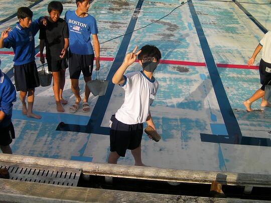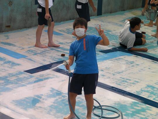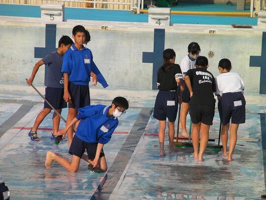 体育委員の生徒とボランティアの生徒と体育科の教員でプール清掃をしてくれました。