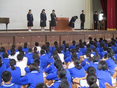 任命式、主体的・自治的な力で学校づくりへ 投稿日時 : 2018/10/27 大沼中 カテゴリ: 第43代生徒会役員の任命式が10月26日に行われました。生徒会選挙を経て、みんなで決めた役員、一人一人の協力によりさらに生徒たちでより良い学校へ大沼中へ期待します。写真は、新生徒会長のあいさつ旧生徒会メンバーからのあいさつの様子です。